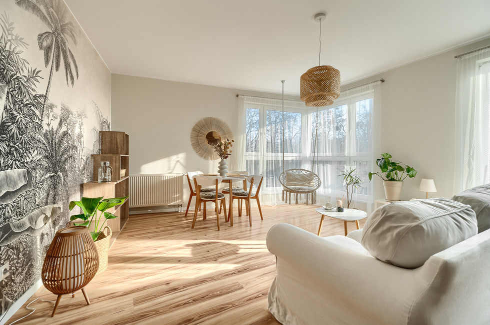 Mieszkanie z widokiem na Odrę w stylu boho to przede wszystkim przestrzeń pełna naturalnego światła i przytulnej atmosfery. Styl boho charakteryzuje się łączeniem różnych wzorów, faktur i kolorów, dlatego w tym mieszkaniu można znaleźć wiele ciekawych detali i elementów dekoracyjnych. To mieszkanie to idealne miejsce dla osób ceniących przytulność, naturalne materiały i piękne widoki.